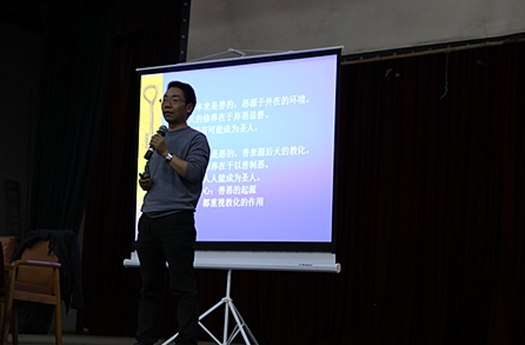 讲座首先围绕习近平总书记近期强调的“通过挖掘中国传统道德文化以使社会主义核心价值观出现在人们生活中的方方面面展开,进而引出人们对于中国传统道德理解的欠缺。他在讲座中强调:“现在大学生对于传统道德的理解不够充分,应该让大学生知道为什么要提高道德素养,而不仅仅是教条式地告诉他们该怎么做”。在此基础上,龚教授提出三个问题,即“什么是德性”?“为什么要提高德性”?“如何提高德性”?并指出关于德性的四种观点——“性本善”、“性本恶”、“不善不恶”、“有善有恶”。此外,龚教授着重采用孟子和荀子的论述对前两种观点进行解释说明,最后得出二者的共同点,即教化的作用。