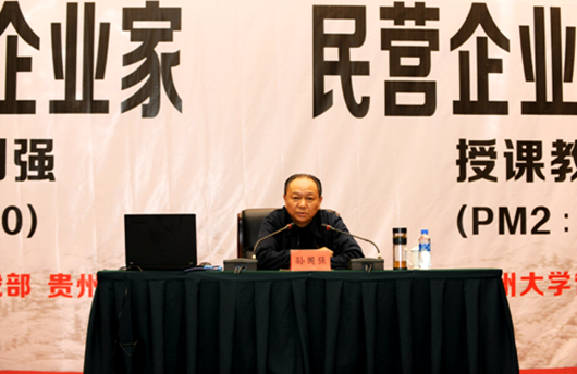 贵州省政协副主席、贵州大学管理学院名誉院长孙国强教授作了“四个全面战略布局与新经济常态”的课程讲座,他首先解释四个全面战略布局包括全面建成小康社会、全面深化改革、全面依法治国和全面从严治党,并重点阐述在深化改革中,民营企业家需要把握以下几点:第一,改革是中国发展的根本动力,第二,全面深化改革就是全面调整利益关系,第三,以经济体制改革为重点,带动其他体制改革,第四,全面深化改革包括经济体制、政治体制、文化体制、社会体制、生态文明体制和党的建设制度的深化改革。孙国强教授还强调在全面依法治国中,需坚持党的领导、人民当家作主和依法治国有机的统一,核心是坚持党的领导,并建成有中国特色的社会主义法律体系,发挥领导干部的关键少数作用。再次,孙国强教授简要介绍“新常态”的由来,重点介绍全球经济战争,在未来20年内,世界的经济是相互依存和相互渗透,如果世界各国自扫门前雪,只顾自己的利益,实行贸易保护主义,打货币战争、贸易战争和能源战争,只会两败俱伤,合则共赢。最后,孙国强教授介绍了贵州新常态经济,表示贵州经济保持上升的态势没有改变,但全球和全国的下行压力大,贵州应大力提高创新升级能力,重点发展大数据产业,使之成为贵州经济新的增长点,并对企业家提出三点建议:第一,稳住阵脚,不要盲目投资,第二,保证现金流,不要只看账面数据,第三,适度创新,把客户变成用户。