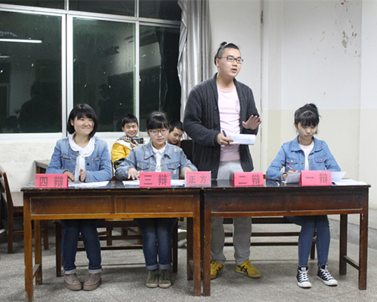 贵大新闻网讯(记者团 韦杏桃 实习记者 刘钰 报道︱摄影 张新茹)3月27日晚,林学院团委学生会在农生楼205举行以“思辩青春,放飞梦想”为主题的辩论赛半决赛。林学院学生会副主席张黎俊、黄朝海,林学院青协会长吴丹,林学院最佳辩手姚姗,大四的学生评委丁光玲。