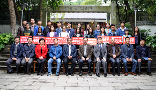 贵大新闻网讯(图/文 记者 田鑫)4月22日下午,贵州将军书画院院长陈庆云与副院长谌宏昌、王武强三位老将军专程来到我校中国文化书院参加贵州省慈善总会大学生“为老志愿服务活动”贵州大学助学金发放仪式,将创作的书画作品拍卖所得善款8万元,通过省慈善总会发放给了我校20名经济困难学生,每生获助学金4000元。 仪式前,校长郑强、副校长吴次南会见了陈庆云、谌宏昌、王武强三位老将军一行,并进行了交流。陈庆云、谌宏昌、王武强曾分别担任省军区原司令员、原政委、原参谋长。 三位老将军,吴次南,省民营经济发展促进会副会长、秘书长陶涛,省慈善总会副会长覃祖祥,民营经济发展促进会、省慈善总会、我校学生资助管理中心相关负责人参加仪式。 陈庆云讲话。他说,捐助活动要与中国实际、贵州实际相结合,通过多种渠道充分发挥好慈善资金的作用。他希望通过捐助活动,教育、影响更多的人积极加入到慈善活动中来,让公益意识植根于更多人的心中。
