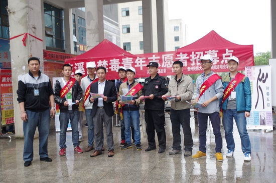 贵大新闻网讯 (记者团 鲁鹏程 实习记者 曹欢欢 雍霜 报道│摄影 邹榕琪)为积极响应“向毒品说‘不’,打一场禁毒的人民战争”的号召,进一步弘扬“奉献、有爱、互助、进步”的志愿服务精神。22日中午,由花溪区团委、校土木工程学院青协及新区保卫科主办的禁毒宣传暨禁毒青年志愿者招募活动在新区食堂门口举行。