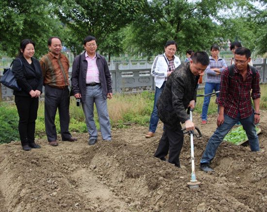 在参观乐山现代烟草基地单元的过程中,技术人员向老师们介绍了基地单元烟叶生产情况,采用的育苗、移栽的新设备和新技术,重点介绍了棚架覆盖育苗和温室无土育苗技术,并现场示范了打孔机的操作方法和井窖式移栽技术。老教师进行现场讲解答疑,年轻教师们认真做着笔记,并亲自上前操作,在田间地头上了一节生动的示范课。