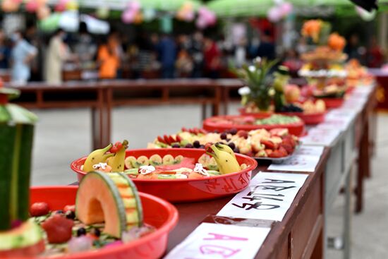 “觉得这些水果拼盘好漂亮,真是一个视觉与味觉的体验呀”在现场观看的同学陈然说到。
