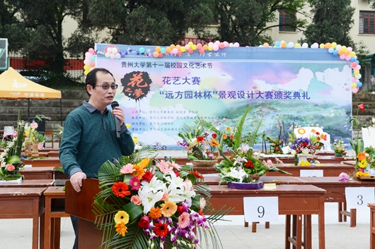 贵大新闻网讯(林学院 何嵩涛)4月28日下午,“远方园林杯”第二届贵州大学景观设计大赛颁奖典礼在南校区灯光球场举行,校党委副书记杨未、副校长金道超、贵州省住建厅城管处副处长曾静、贵州省公园绿地协会副会长罗星华、贵州远方园林建设有限公司董事长张鼎出席颁奖典礼。学校相关职能部门负责人、林学院党政班子成员、林学院园林专业全体教师、贵州师范大学、贵阳学院教师代表和获奖选手参加了颁奖典礼。
