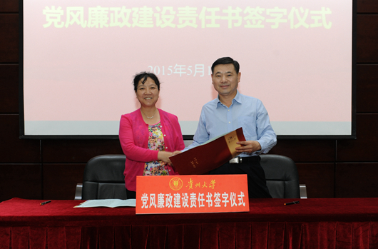 姚小泉代表校党委与招生就业处、资产管理处等党风廉政建设重要部门签订了责任书。省教育纪工委罗润生书记到会指导,并作党风廉政建设暨“三严三实”专题教育报告,对当前我国反腐败斗争的形势,尤其是教育系统的党风廉政建设和反腐败工作进行了分析,从“秉公用权,廉洁从政”的高度对学校贯彻落实“三严三实”提出了明确要求。校党委副书记杨伟民强调了党风廉政建设主体责任范围和内容,并对学校“三严三实”专题教育活动作了安排部署。财务处、管理学院、继续教育学院主要负责人就落实党风廉政建设主体责任作了承诺发言。校党委常委、校纪委书记汪海波主持会议。