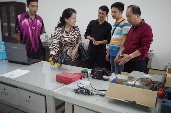 在参观创客作品和交流过程中朱主席给予了新校区创客充分的肯定,同时也提出了要更好地宣传创客、创客空间、众创空间。柳州市创客空间负责人韦明就贵阳创客的发展情况和相关设备问题跟蔡老师讨论交流并相互学习。