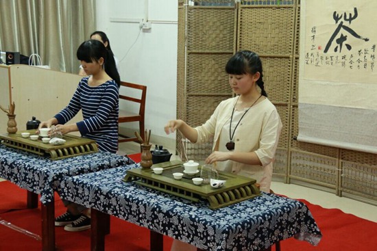贵大新闻网讯(记者团 张忠海 实习记者 张倩 报道|摄影 敖清莹)为发扬中国传统茶文化精神,增进同学们对茶文化的了解。5月15日,由茶道社主办的我校第三届黔茶“八角山”杯茶艺比赛初赛在我校南校区植保园艺楼举行。