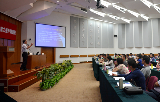 开学典礼结束,北京师范大学经济与工商管理学院原院长、博士生导师李翀教授随即开讲,为学员作了精彩的《中国长期经济发展前景分析》。在接下来为期十天的培训中,专家们还将就高等教育发展与高校人才培养、教学方法改革,以及高校教师压力管理与专业发展等内容展开课程讲授、讨论,并组织学员对“未来教室”进行参观体验。