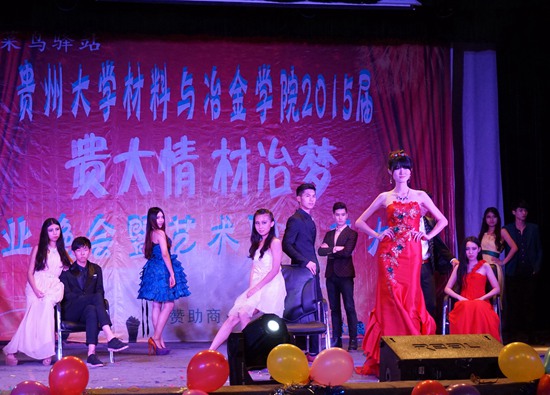 贵大新闻网讯(记者团 喻碧华 姚玉莹 覃会 林金燕 报道|摄影 张悦)5月27日晚,由材料与冶金学院主办的2015届“贵大情•材冶梦”毕业晚会暨艺术团成立大会在北校区大礼堂举办。材料与冶金学院党委书记胡环宁、院长刘其斌、党委副书记张瑞良、副院长熊玉竹及学院各老师同学观看了此次晚会。