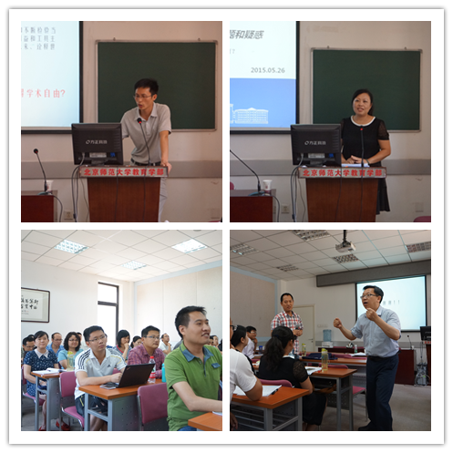 在以“当前教育教学存在的问题和疑惑”为题的“教育论坛”活动中,我校电气工程学院吴钦木、旅游与文化产业学院何丹两位老师在分组讨论中脱颖而出,分别代表小组在论坛作主发言,他们准备充分,论点新颖,表达流畅,在论坛中表现突出,得到论坛主持人朱旭东老师高度肯定,论坛还就课堂教学如何促进学生的认知发展,让学生学会学术,以及学生个人价值化的实现等内容进行了热烈的讨论。