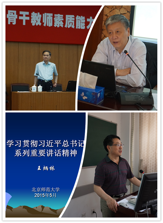 北京师范大学经济与工商管理学院原院长李翀教授为学员作了精彩的《中国长期经济发展前景分析》,从我国经济长期发展情况、面临的问题和挑战、长期发展前景、阶段性变化、经济热点问题分析等方面作了深入浅出的论述,并对我国经济发展前景作了预测。教育部高等学校社会科学发展研究中心主任王炳林教授讲授《学习贯彻习近平总书记系列重要讲话精神》,从总书记讲话的内在逻辑和主要内容,分析了总书记讲话的特点和意义。中国教育学会会长钟秉林教授作了《高等教育发展与高校人才培养》的报告,指出中国高等教育发展任重道远,必须深化人才培养模式改革。毛亚庆教授分析了《改革开放以来高等教育发展的市场化与大学发展》,洪成文教授提出了《高校教师专业卓越发展的理论与路径》。几位老师把看似枯燥的经济、政治、教育等理论讲得生动活泼,易于理解,同时也更加坚定了学员的专业自信和职业自信!