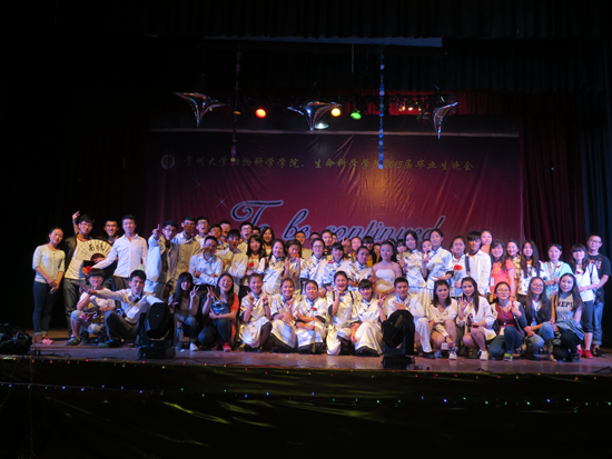 贵大新闻网讯(生命科学学院 邓云莲 报道|摄影 徐育兰)6月7日晚,生命科学学院与动物科学学院,于南校区大礼堂联合举办了一场主题为”to be continue.未完待续”的2015届毕业生欢送晚会。本次晚会由两院团委、学生会联合承办,旨在给即将毕业的2015届学子留下一份难忘的回忆,同时促进两院的友好合作和交往。