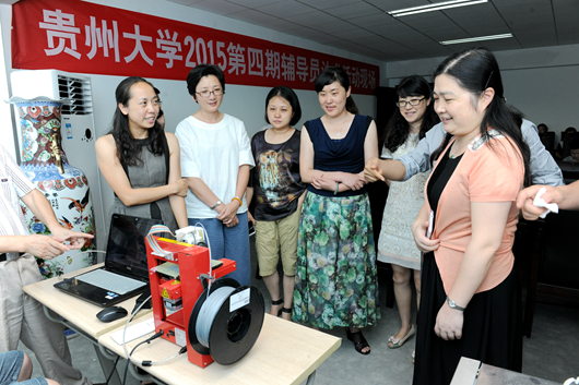 经济学院李云老师就大学生职业生涯发展规划辅导分享自己的经验,她指出了工作探索的重要性。机械学院伍凯峰老师作了大学生创新工作交流发言,阳明学院王婷婷老师就学生成长创新与理学院的有机融合提出了一些建议。 老师们饶有兴趣地参观了3D打印机并拍照留恋。