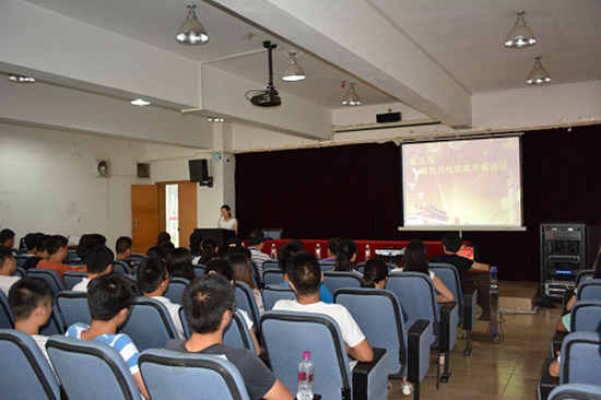 最后,明德学院党委书记徐建平作了讲话。他指出在党的九十四周年生日即将到来之际,他对学院广大党员祝以节日的问候,感谢广大党员为学院的发展付出的艰辛努力,他们要继承和发扬党的优良传统和优秀作风,为实现中华民族的伟大复兴和早日实现中国梦儿努力奋斗。