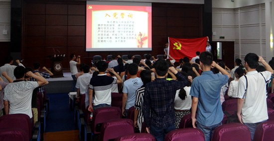 随后,新党员在副书记陈朝东的带领下进行了入党宣誓仪式。学院党委书记骆科扬同志做总结讲话:“我们的党已经走过了94年的光辉历程。作为一名中国共产党党员我们感到无比的骄傲和自豪。代表着祖国和民族的未来的广大同学,是我们的事业兴旺发达的希望所在,要争做一个无愧于时代,无愧于祖国和人民的优秀共产党员。”