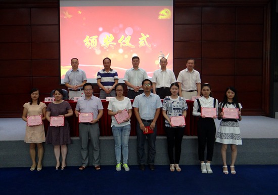 伴随着庄严的国歌,大会正式开始。理学院副院长杨辉宣读了学院党委的表彰决定。该院本科生数学系第二党支部等2个党支部、何飞等9位优秀党务工作者、白忠臣等19位优秀共产党员予以表彰。优秀党务工作者代表彭定涛老师在大会上发言:“要把对党的忠诚和热爱投入到自己的本职工作中去,与同志们一起认真履行党员的职责,努力发挥党支部的战斗堡垒作用, 为学院的健康发展贡献自己的力量。”