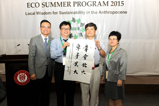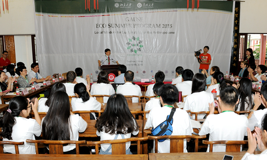 贵大新闻网讯(实习记者 曹天歌 记者团 陈晓露)7月11日上午,由北京大学牵头发起,北京大学和贵州大学共同承办的生态文明国际大学联盟(GAUSF)-2015年学生暑期项目在我校中国文化书院举行开营仪式。