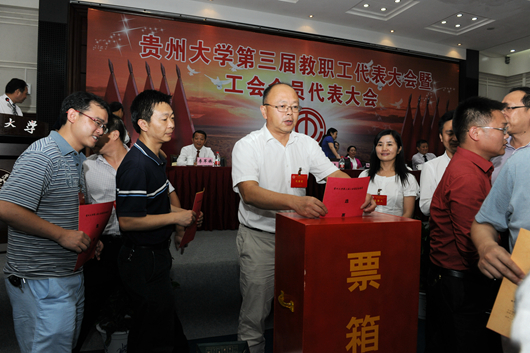 贵大新闻网讯(文字/尹梓熹 摄影/陈恒)7月14日上午,第三届教职工代表大会暨工会会员代表大会闭幕式在北校区行政楼学术报告厅举行。