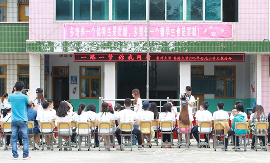 贵大新闻网讯 (记者团 张红梅 报道|摄影 余思枚)7月17日,贵州大学与香港大学学生志愿者一同从贵州大学前往贵州省普定县猴场乡西北小学,并将在该校开展为期10天的暑期义教活动。
