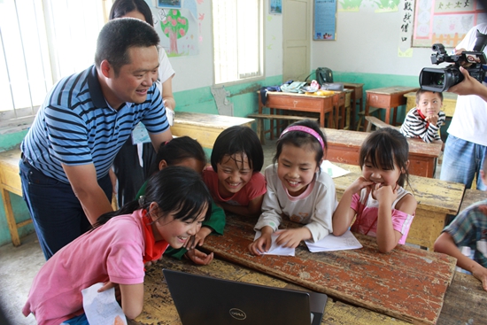 彭县长一行来到几个正在上课的班级门外。在窗外默默观察的彭县长转身表示学生学习很认真,老师也很负责。罗部长说学生们习惯了之前学校老师的教学方式,突然接触到这些志愿者,会觉得很新鲜,学习劲头就会很足。当走到一个正在自由活动的班级时,彭县长走进去蹲在学生身边,与孩子平视,并问他们是否喜欢自己的老师、如果老师支教结束离开学校学生是否会伤心等问题。最后,彭县长叮嘱学生们好好学习,珍惜这次难得的受教经历。