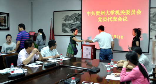 机关党委委员、宣传部副部长罗卫刚宣读《中共贵州大学机关委员会增补委员选举办法》。机关党委副书记郭龙翔就机关党委委员候选人推荐情况作说明。机关党委副书记谢佳宣读监票人、计票人名单。