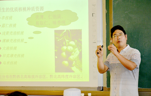 潘学军教授向农户详细介绍《核桃营养价值与产业发展趋势》。我国的植物油一直依赖国外进口,而核桃油是植物油的主要来源之一,因此,国家重视和支持发展核桃产业。核桃具有极高的营养价值和保健功能,核桃全身都是宝,核桃壳、核桃木材等都能加工成高附加值的产品。潘教授还详细地向农户代表传授《优质核桃的标准化栽培技术》,他提醒果农加强核桃的管理和病虫害防治,科学简单的解释,明白生动的语言,赢得果农频频点头称赞。