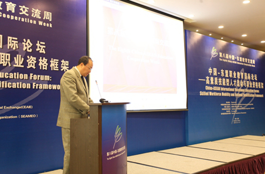 中国教育国际交流协会副秘书长宗瓦致欢迎辞,他表示,这次会议很荣幸邀请到中国、马来西亚、缅甸等国有关教育部门的领导和专家围绕着构建国家职业资格框架促进技能型人才流动这一主题分享经验交流成果,相信大家必将在此次论坛上碰撞出灿烂的火花,为中国以及有关东盟国的职业教育改革和发展提供有益的建议。