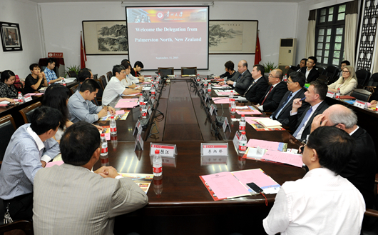 贵大新闻网讯(记者 田鑫 /陈恒 摄)23年前,贵州大学与新西兰梅西大学因贵州省独山县的草种场结下了不解之缘。23年后的9月11日,在新西兰北帕市市长史密斯和贵阳市副市长吉宁峰的共同见证下,贵州大学与新西兰梅西大学决定继续合作并签署了合作备忘录。