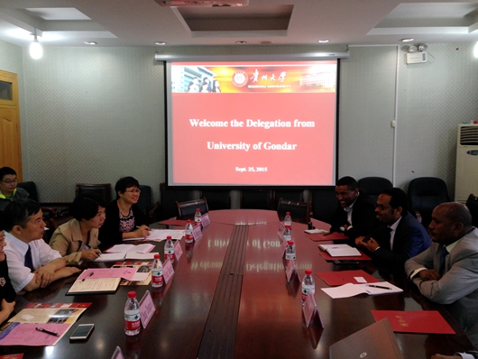 贵州大学新闻网讯(记者丁龙)9月25日上午,埃塞俄比亚贡德尔大学代表团一行到校进行访问交流。座谈会在行政楼4号会议室举行,副校长宋宝安,校相关部门负责人参加会议。