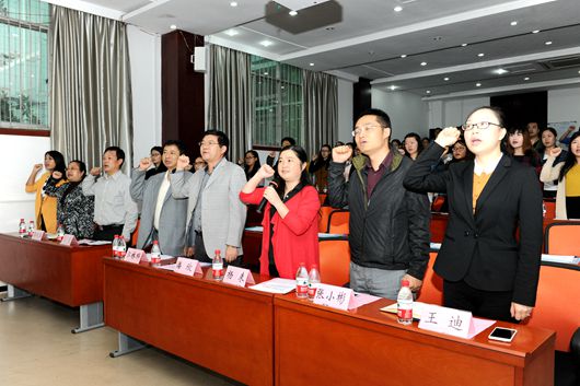 最后,新聘辅导员代表发言,并宣誓成为一名优秀合格的辅导员。
