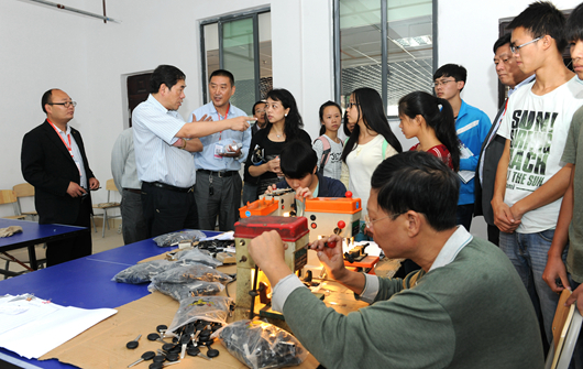 上午,陈坚来到校园扩建工程(二期)明俊楼,踏进机械专业、材料专业班会现场,看同学们发教材、开班会、选班委、学习安全知识,与同学们互动交流。