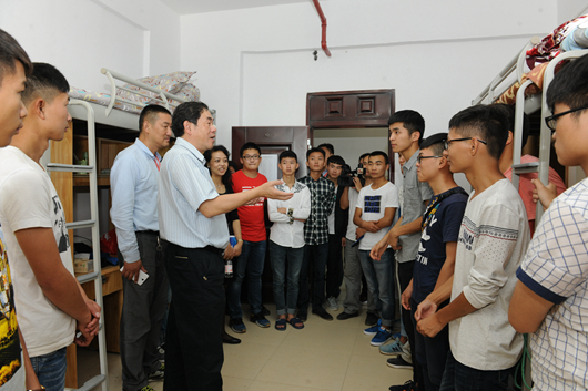 陈坚还来到学生宿舍查看水电、网络、通信等,深入学生食堂了解饭菜质量、价格等。