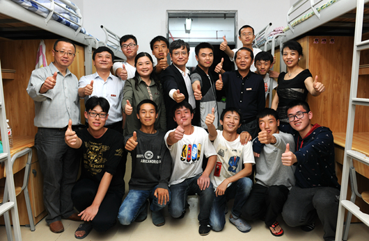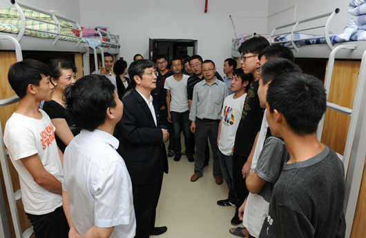 贵大新闻网讯(记者团 辛思远 摄影 陈恒)在国庆佳节来临之际,9月30日下午,贵州大学校长郑强教授在校党委副书记杨未,副校长向淑文、李军旗的陪同下,带领校办、学生处、校团委、后勤处、后勤集团、阳明学院等相关职能部门负责人来到贵大西校区,慰问刚入校的2015级新同学。