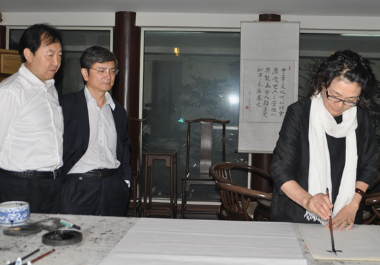 参观结束后,刘辉、马秋红等分别为文化书院题字留念。