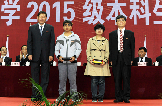 在“家长嘱托”和“学子明志”两个环节,2015级新生家长代表蔡曼同志和阳明学院文学与新闻专业王昊鹏同学发言。接着,主席台就座领导和专家为新生代表佩戴校徽。全体新生郑重地将见证学校一百多年风雨历程和辉煌成就、凝聚着一代代贵大人赤子情怀和庄严责任的校徽佩戴在胸前,从此正式成为贵大一员、进入人生崭新阶段。