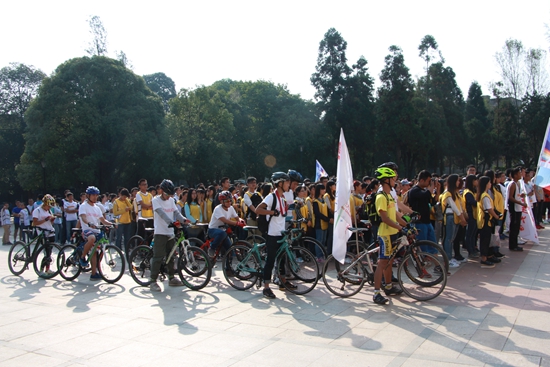贵大新闻网讯(记者团 陆瑶 摄影报道)10月17日上午,2015全国大学生迷你马拉松公益挑战(贵州站)开幕式在北校区大礼堂门前举行。活动以“相约迷马,为爱出发”为主题,鼓励大学生为爱奔跑,为聋哑儿童筹集善款。中国青年报社贵州站站长、中国(贵州)高校传媒联盟秘书长白皓,我校党委宣传部部部长周乐成,副部长崔东明参加开幕式。
