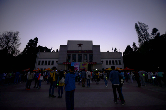贵大新闻网讯(记者团 王名润 报道|摄影 王福宇)10月24日晚,2015年康宝莱全国大学生迷你马拉松公益挑战贵州大学站之第二期荧光夜跑(以下简称“迷马”)在北校区大礼堂前开跑。由我校创业团队溪山科技友情提供的两幅5×3m“迷马”喷绘悬挂在大礼堂门前,尤为引人注目。