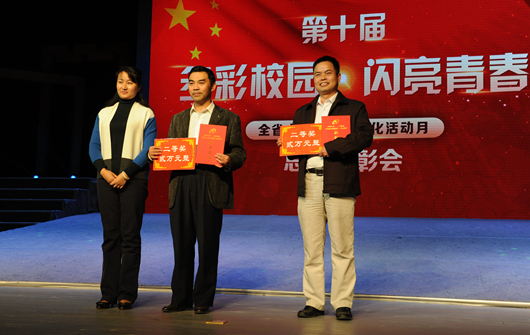 “多彩校园·闪亮青春”第十届全省大学生校园文化活动月表彰项目分为先进集体,先进个人,感动校园十大人物评选活动,“弘扬宪法精神建设法治中国”网络知识竞赛、现场知识竞赛、征文比赛,摄影大赛,“弘扬中华优秀传统文化和践行社会主义核心价值观”艺术设计大赛、微视频大赛,2015贵州省“校园好声音”歌唱大赛10个项目。我校获先进集体二等奖,杨琴和金竹老师获先进个人奖,常志敏同学获“感动校园十大人物”称号。