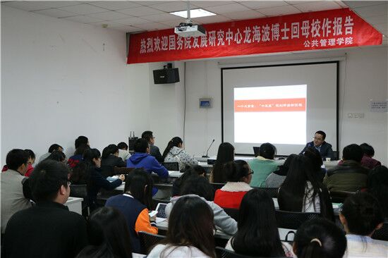 贵大新闻网讯 (记者团 付鼎 周佳颖 实习记者 姚瑶 杨秀秀 报道|摄影 张家豪) 11月2日下午,我校优秀校友龙海波来到公共管理学院会议室作了一个以“当前热点问题透析:以改革创新引领‘十三五’新跨越”为主题的报告会。本次报告会由公管学院许鹿老师主持。80名公管学院14、15级的学生听报告。