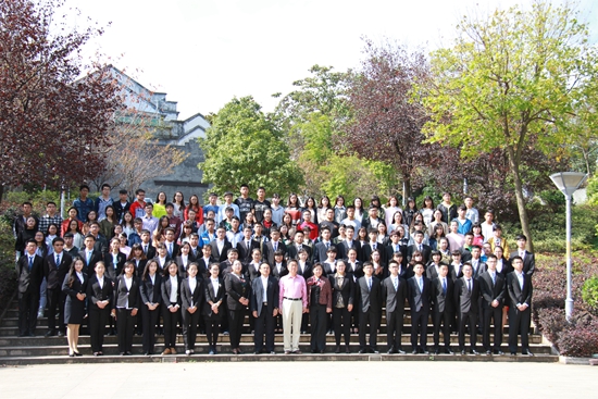管理学院团委第一副书记覃宪清做团委工作报告。管理学院学生会主席陈腾做学生会工作报告。学院教师为上一届团学干部颁发荣誉证书并合影留念。至此,大会第一阶段结束。