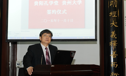 校长郑强认为,此次合作签约体现了贵州大学的办学方向和办学理念。贵州大学入驻孔学堂是贵大的历史责任和担当,要有自尊、自豪、责任,把孔学堂建设成为文化圣地、教育殿堂,把贵州大学建设成入驻孔学堂高校的典范。