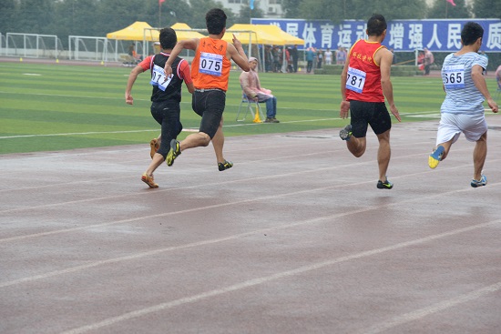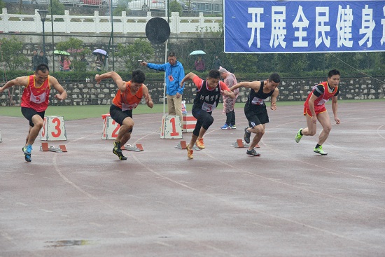 比赛选手们在听到一声枪响后快速冲向终点。第5道运动员李肇雨首当其冲,在大约50米处第4道运动员于甲达奋力赶追,超越李肇雨,一举夺冠,赢得观众欢呼与掌声。
