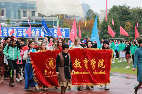 贵大新闻网讯 (记者团 樊宏俊 实习记者 易蕾 报道|摄影 程国栋)11月12日,我校第十一届体育节在北校区体育场举行。国际教育学院的留学生们也积极参与其中。
