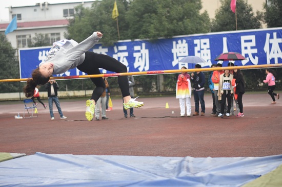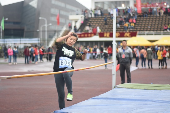 按比赛程序,参赛队员先进行1米高度试跳,之后为1.1米、1.15米、1.2米、1.25米、1.3、1.35米的起跳高度。助跑、起跳、过杆、落地,动作优美,一气呵成,0742和0064在试跳阶段就带来了惊艳的表现;而0909和0852的背越式更是博得现场观众的尖叫与欢呼。来自研究生学院的0852号参赛队员戴雪晴说道:“天气对我的发挥有些影响,但我对我的试跳还是很满意,我相信我的实力。”在1.25米高度的比赛中,来自体育学院的0909号参赛队员高亚梅发挥失常,3次动作不到位致使背部触杆不幸被淘汰。她总结失败原因道:“下雨天地面太滑影响了我的发挥,另外长期没有练习跳远,太过生疏,导致比赛失利。”
