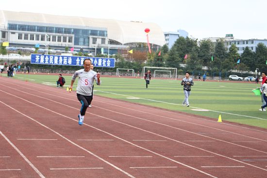 贵大新闻网讯(记者团 王瑶 实习记者 吕彦南 报道|摄影 李婕)11月14日上午,教职工男子4×100接力赛决赛在我校北校区田径场举行。