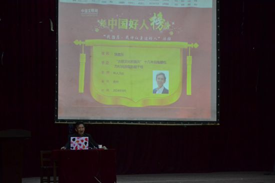 贵大新闻网讯 (记者团 杨灵通 实习记者 张会敏 报道|摄影 黄月亮) 11月13日上午,由我校明德学院主办的“诗赞中国梦”主题讲座于南校区大礼堂举行。活动旨在传扬中华诗词文化,提升大学生诗词鉴赏能力。活动由菊林书院院长饶昌东先生主讲。