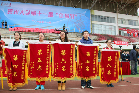 11月14日中午,我校第十一届体育节闭幕式暨颁奖典礼在北校区田径场举行。贵州大学党委副书记骆长江,总会计师谢田凯,校长办公室主任张大林等相关领导参加。