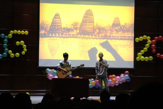 随后,各个社团带来精彩表演。首先登台的是维忽拉社团,他们带来的吉他弹唱《南山南》赢得了一片掌声;笛箫协会则给大家带来笛子独奏,动听的笛音萦绕在会场内;茶道社以特有的茶技表演《秋韵》让观众品位茶韵之美等各个社团精彩表演,把庆典气氛推向高潮。