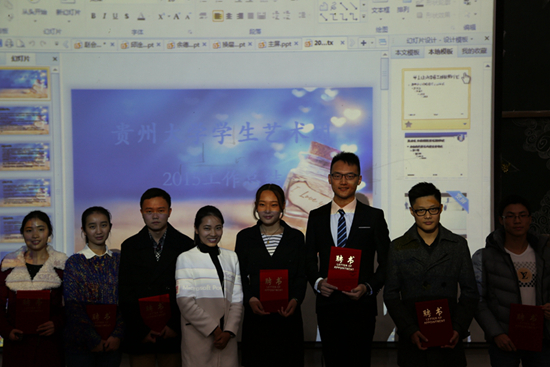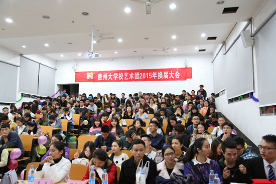 贵大新闻网讯 (记者团 张圆 实习记者 宋晨秋 报道| 摄影 程国栋)11月17日晚,我校艺术团第十二届换届大会在外语楼举行。校团委陈勇老师,艺术团指导老师李月、陈双荣及部分艺术团学生代表参加本次换届大会。