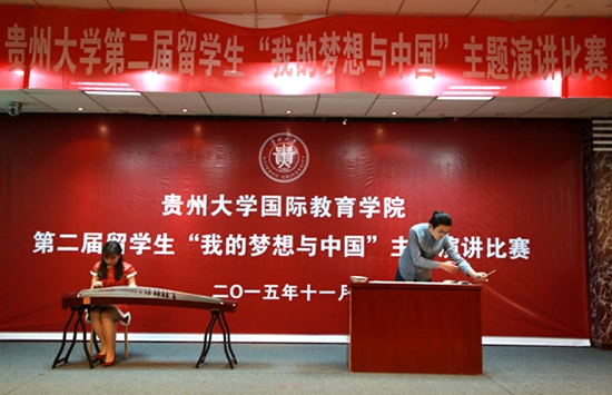 贵大新闻网讯(记者团 王名润 实习记者 苏文静 安磊 报道|摄影 贾海波)怀揣梦想,跨洋过海,在筑留学生有着怎样的中国梦?11月20日下午,由国际教育学院主办的第二届“我的梦想与中国”主题演讲比赛决赛在北校区模拟法庭举行。国际交流与合作处处长洪云、保卫处处长叶明、人文学院院长庄勇、国际教育学院院长张成霞和副院长梁雪担任评委。来自意大利、泰国、马来西亚、老挝等9个国家的14名留学生挺进决赛,他们依次讲述自己的寻梦故事,抒发对中华文化的热爱。